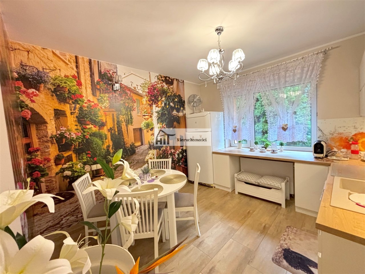 Piętro: mieszkanie z osobnym wejściem z klatki schodowej; 2 sypialnie, duży i przestronny salon, duża kuchnia (umeblowana i wyposażona), łazienka z wc. podłogi podgrzewane i kaloryfery. Wyjście na duży taras.