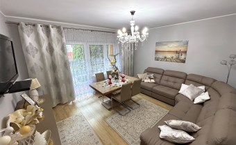 Piętro: mieszkanie z osobnym wejściem z klatki schodowej; 2 sypialnie, duży i przestronny salon, duża kuchnia (umeblowana i wyposażona), łazienka z wc. podłogi podgrzewane i kaloryfery. Wyjście na duży taras.