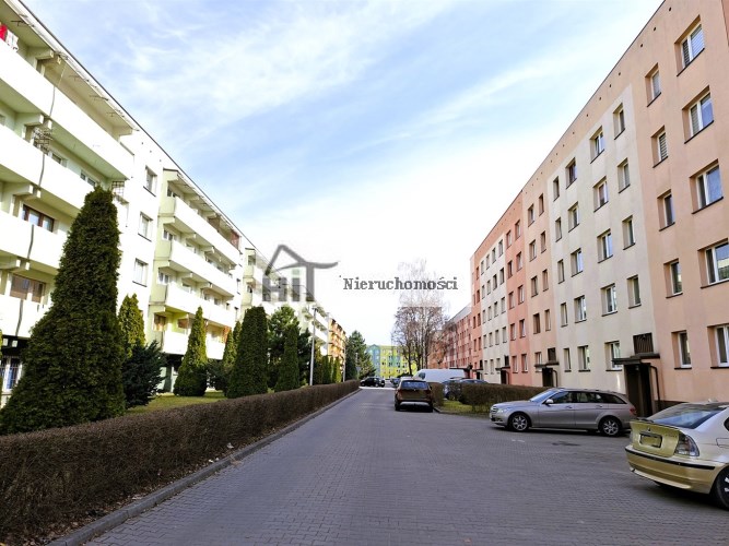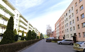 Wokół bloku ogólnodostępne miejsca parkingowe i dużo zieleni osiedlowej.