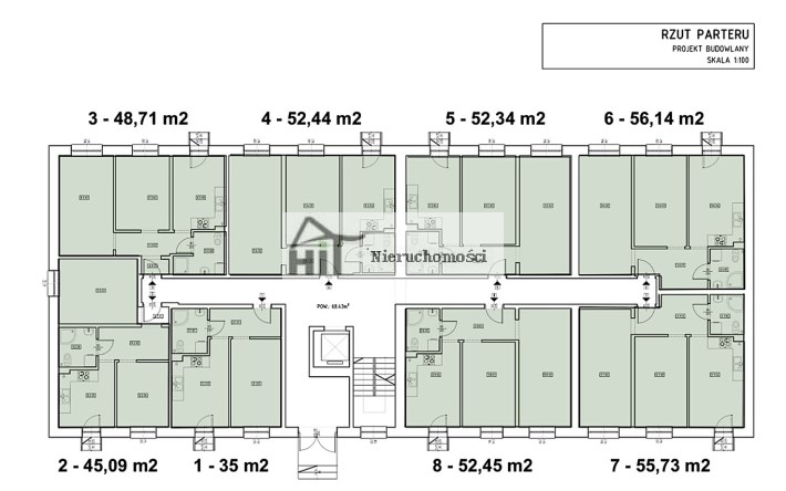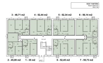 - Funkcjonalne mieszkania o powierzchni ok. 35–56 m²