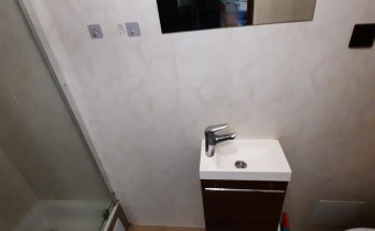 Wejście z klatki schodowej, łazienka z wc nowe płytki, prysznic, aneks kuchenny wyposażony, połączony z jednym z pokoi, podłoga panele , ściany płyty gipsowe, gładzie, podstawowe wyposażenie i umeblowanie , meble kuchenne.