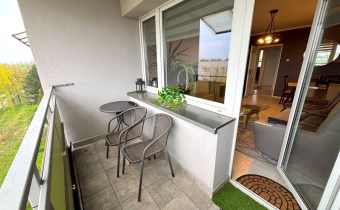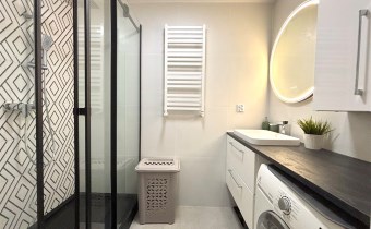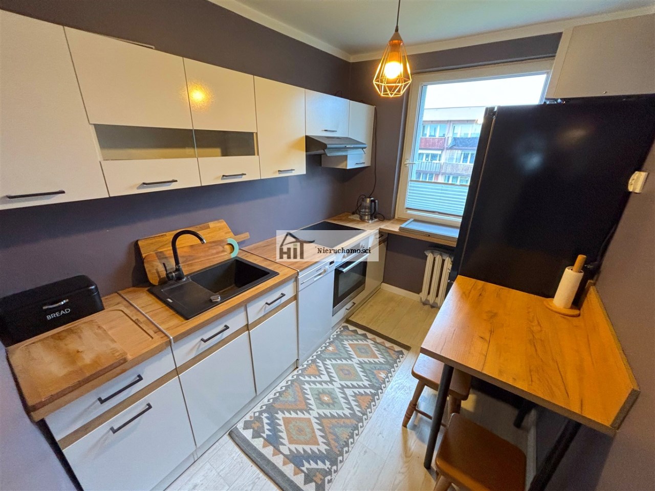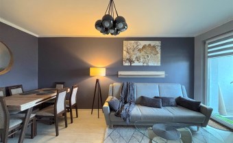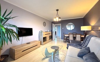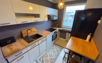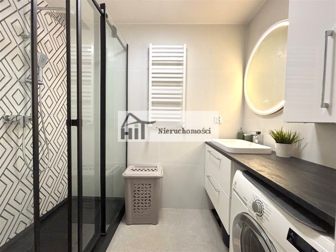 Mieszkanie umeblowane oraz wyposażone (widoczne na zdjęciach). W kuchni meble z AGD (lodówka, indukcja, piekarnik elektryczny, zmywarka, mikrofala). W łazience kabina prysznicowa, pralka.
