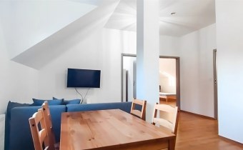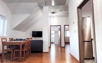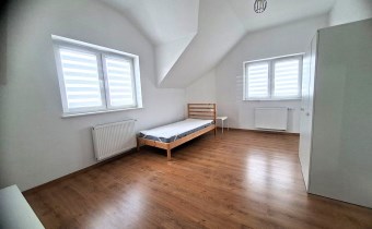Do dyspozycji Najemcy całe piętro: 4 pokoje w tym 3 niezależne sypialnie, salon z jadalnią (wyposażona w meble wypoczynkowe, TV i stół jadalny), oddzielna kuchnia (wyposażona w meble kuchenne, osprzęt agd, z kuchenką elektryczną i piekarnikiem, lodówką), łazienka z wc (pralka).
